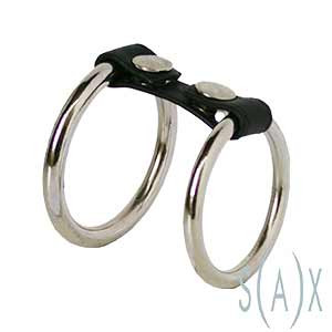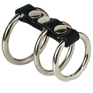 Cut from one piece of leather - one strap goes around the cock and balls while the other goes around the base of the cock.