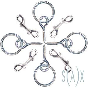 Everything you need to create your own dungeon. 4 Hitching Rings with screw eye and 4 Double Ended snaps. All Stainless Steel.